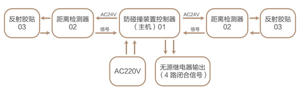 防碰撞裝置系列產品由防碰撞控制器(主機)距離檢測器,鉆石級反射板或反射膠貼等附件組成。